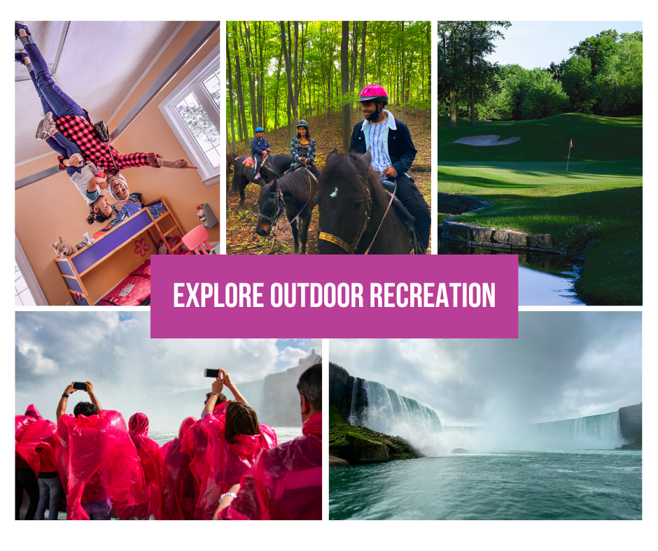 Niagara Riding Stables is perfect for trail rides along the Niagara Escarpment for small intimate groups – and the best part? No experience necessary. Or, you can freshen up your golfing skills at the challenging Whirlpool Golf Course. Ready for some more adventure? Don't miss Niagara City Cruises, getting you close enough to feel the Falls' mighty spray. For something uniquely Instagram-worthy, the Upside Down House offers a totally different kind of thrill.