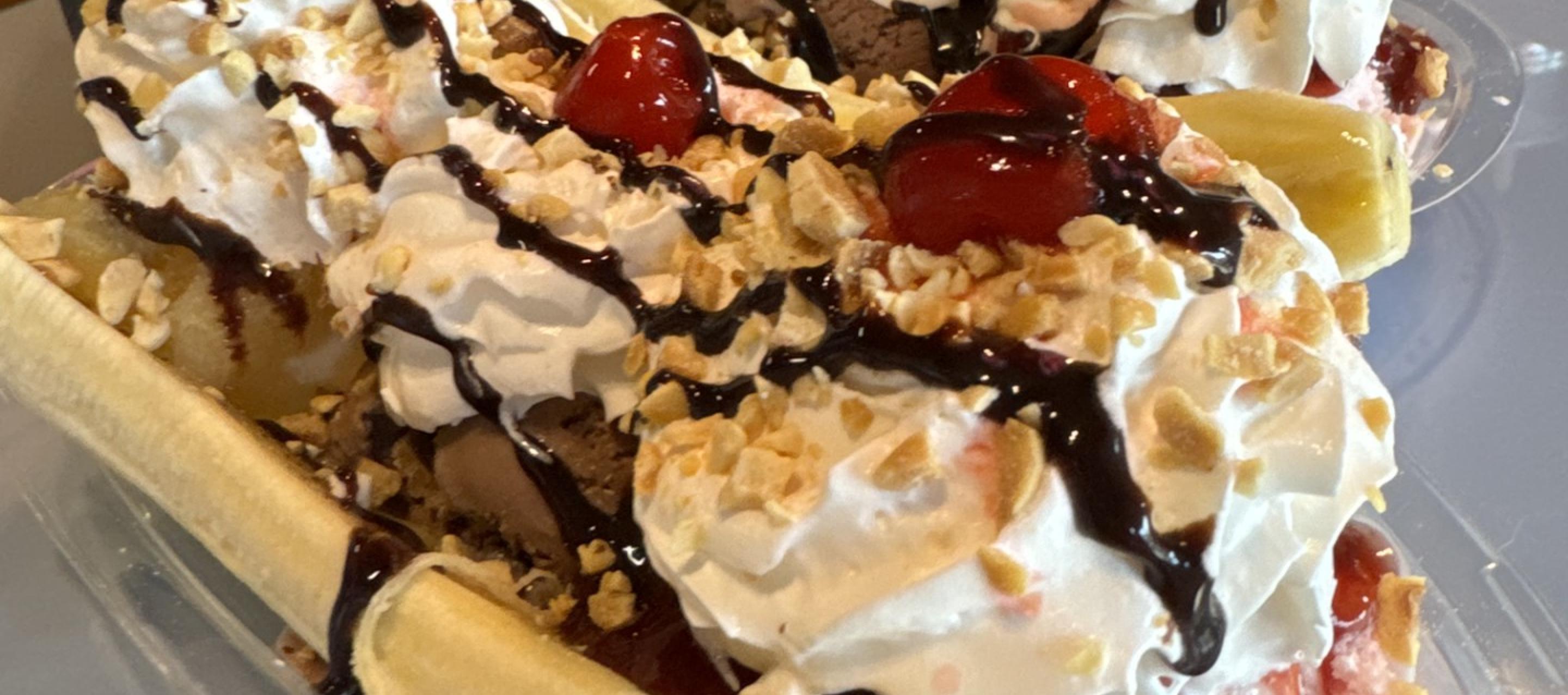 🍒 Sundaes & Banana Splits – Piled high with toppings and whipped cream