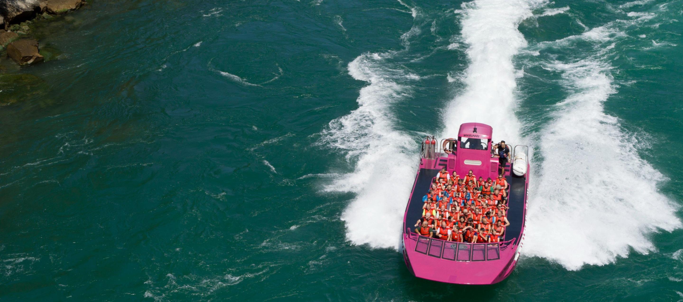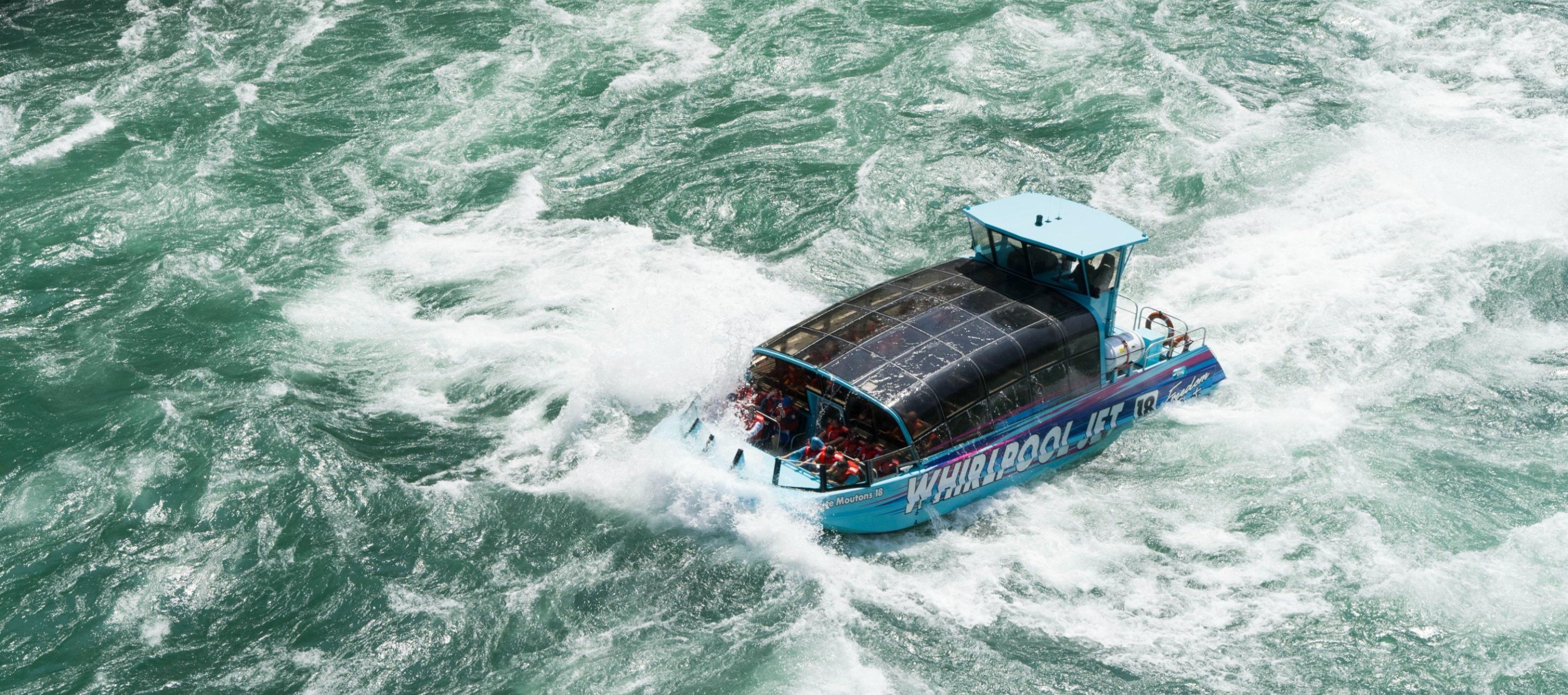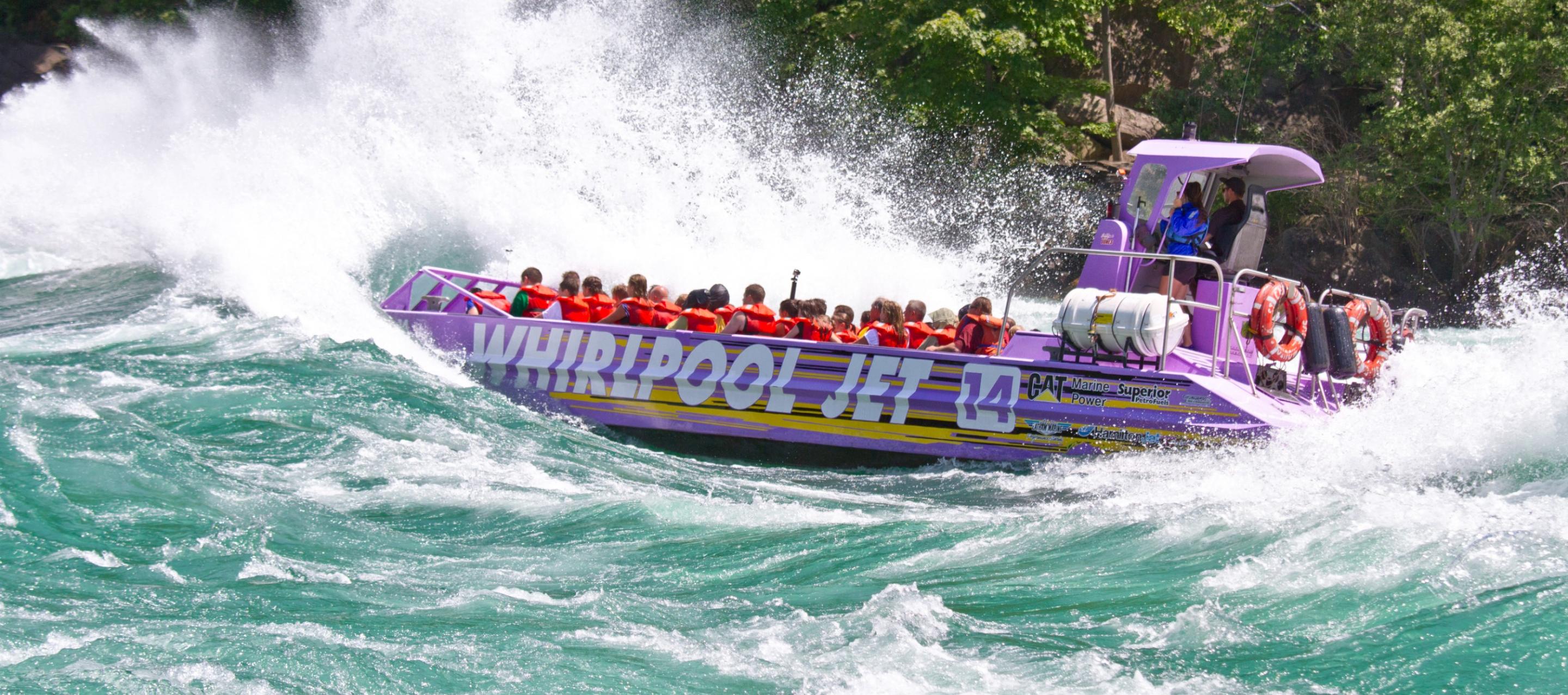Whirlpool Jet Boat Tours has been Niagara’s premier adventure tour on the Niagara River for over 35 years! On this epic tour, you will view awe-inspiring scenery, experience the history of the Niagara Gorge, Niagara Falls & the War of 1812 and feel the rush of the Class 5 white water rapids.