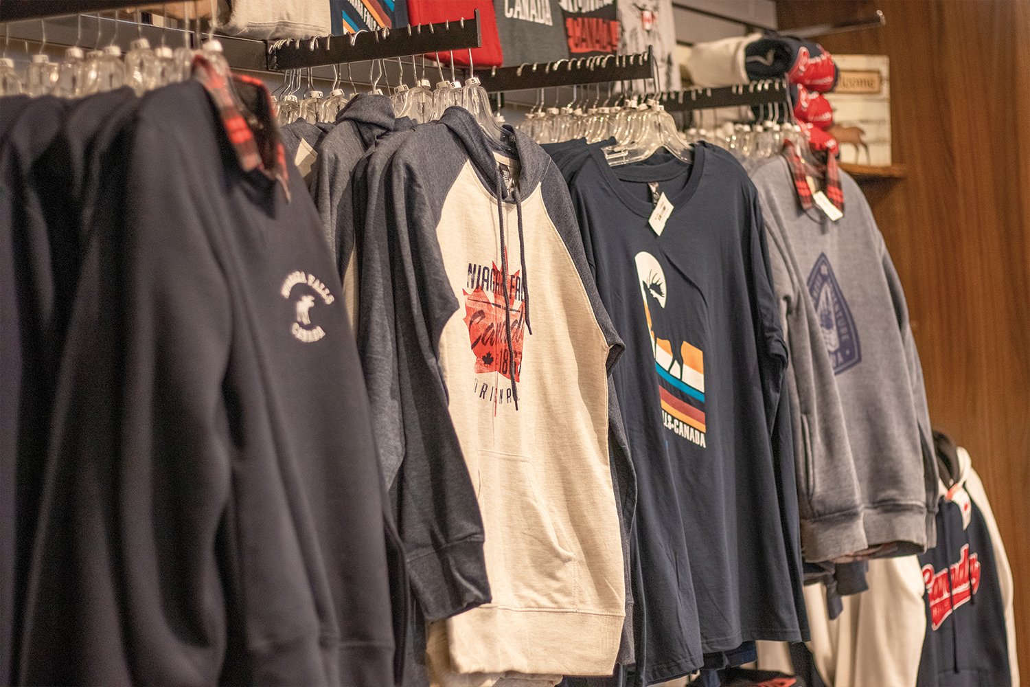 The shops feature a diverse selection of products, ranging from locally crafted wooden items and decorative home pieces to iconic Canadian apparel. Visitors can browse a variety of "True North" essentials, including cozy winter sweaters, traditional northern knit hats, and travel guides that offer insights into the region’s rich history.